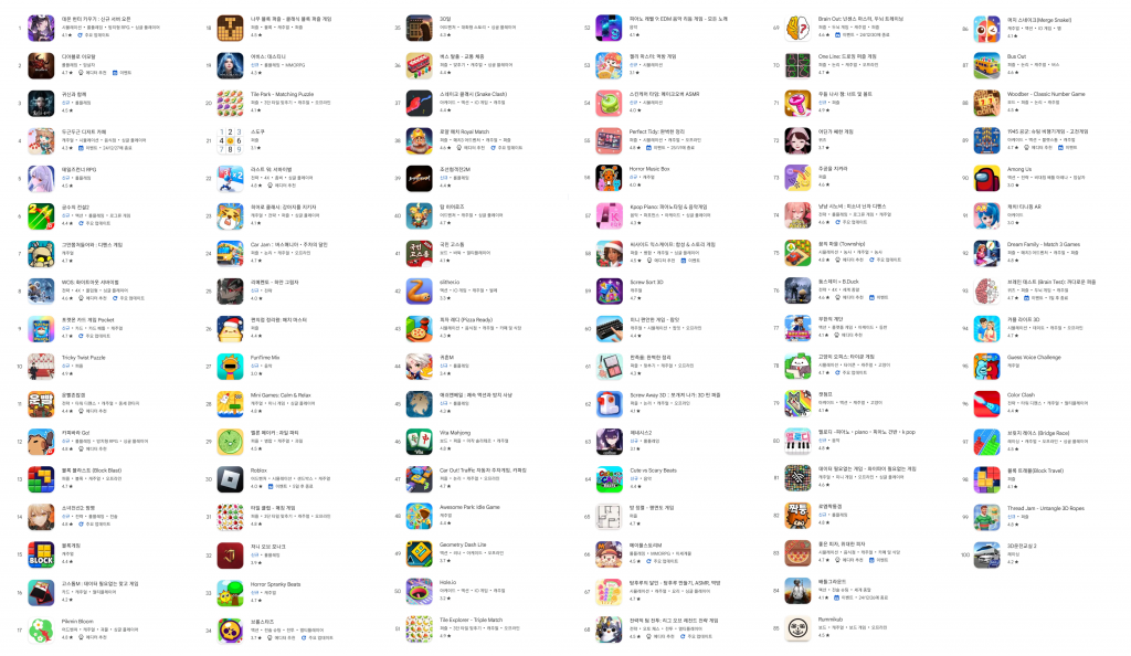 표를 보면 알 수 있듯이 단순히 설치만 많다고 해서 무조건 상위권은 아니에요. 특히 유저 평점과 유지율은 점점 더 중요한 요소로 반영되고 있어요. 게임사들도 이를 고려해서 운영 전략을 세우고 있죠. 😎
