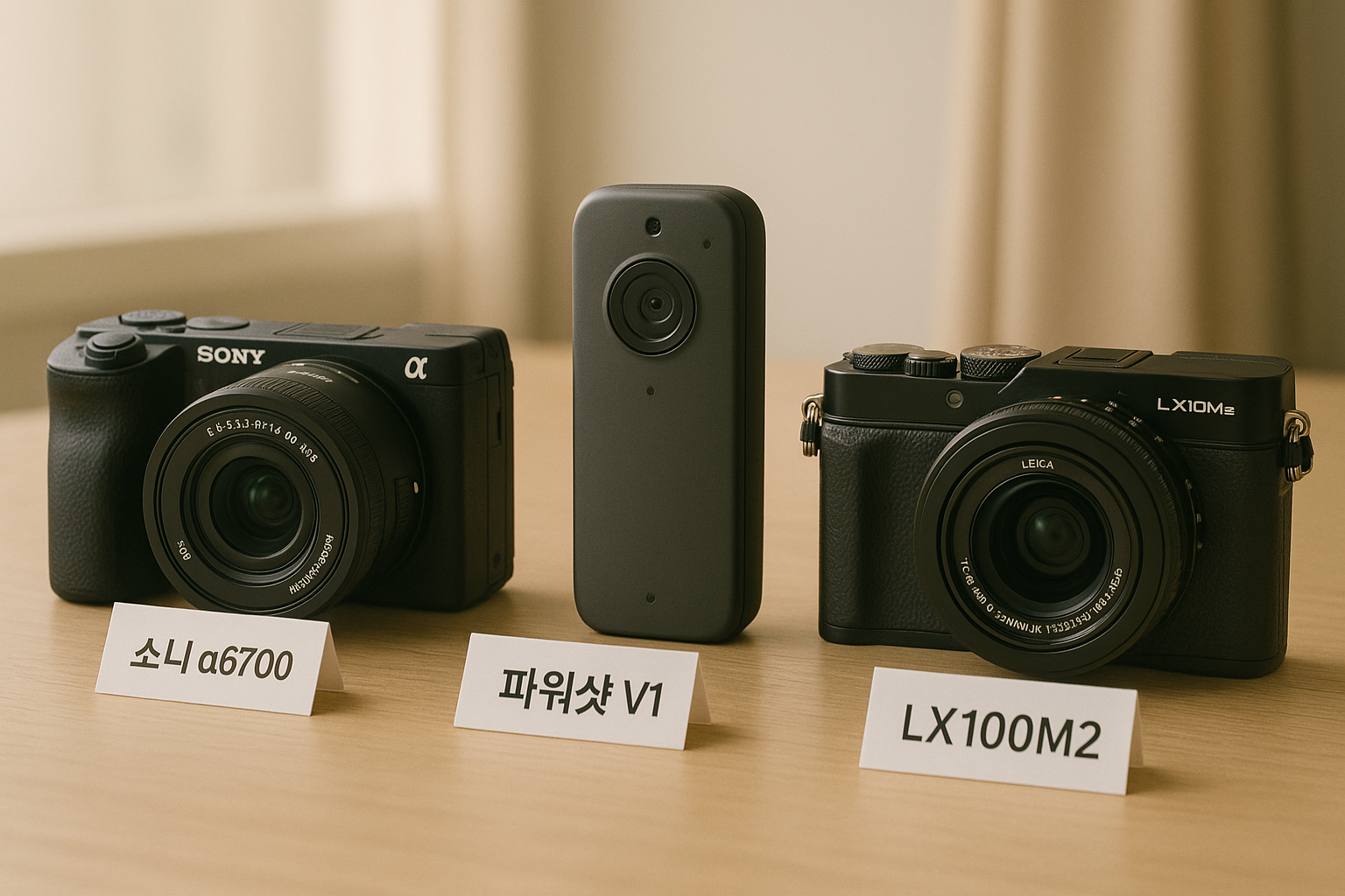 무게와 카테고리 차이만 봐도 어떤 사용자가 쓸지를 어느 정도 가늠할 수 있죠. 영상과 사진을 모두 고퀄로 찍고 싶은 사람은 a6700, 휴대성과 빠른 셀프촬영을 원하는 사람은 V10, 클래식 감성과 수동 조작을 즐기는 사람은 LX100M2가 잘 맞는 조합이에요.
